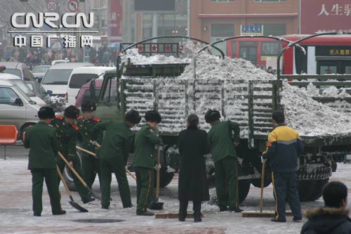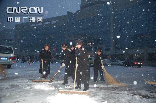 27日,呼鐵局及時(shí)清掃運(yùn)走積雪