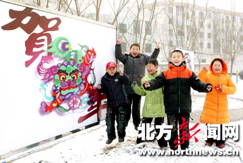 2月4日,孩子們正圍著喜慶的年畫燈箱嬉戲。為了渲染烘托過年的喜慶氣氛,包頭市昆區(qū)友誼社區(qū)在社區(qū)內(nèi)的廣場上安裝了十幾塊年畫燈箱,吉慶有余、花開富貴、好運年年、風調(diào)雨順等具有美好寓意的喜慶年畫為人們送上了美好的祝愿。 攝影/周 蕾