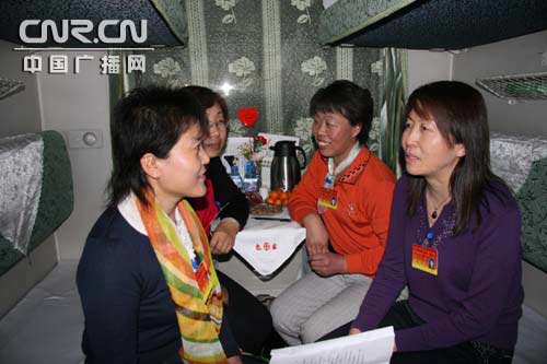 中廣網(wǎng)呼和浩特3月3日消息(記者鄭穎) 3月2號(hào)晚,參加第十一屆全國(guó)人大一次會(huì)議的內(nèi)蒙古代表團(tuán)代表乘坐火車(chē)進(jìn)京;疖(chē)剛一啟動(dòng),同在一個(gè)臥鋪包廂的四位女代表就聊起了各自帶的議案、建議。