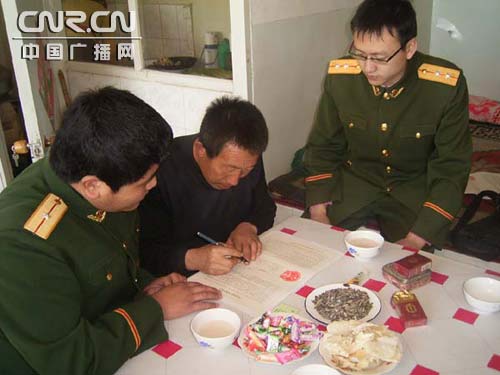 中廣網(wǎng)呼和浩特3月15日消息(記者鄭穎 通訊員白生云)連日來,為做好第29屆奧運(yùn)會(huì)安全保衛(wèi)任務(wù),內(nèi)蒙古包頭達(dá)茂旗公安邊防大隊(duì)官兵深入轄區(qū)走包串戶,動(dòng)員牧民群眾積極開展警民聯(lián)防。圖為達(dá)茂旗巴音塔拉邊防派出所干警正在與牧民簽訂《邊民包防責(zé)任書》。