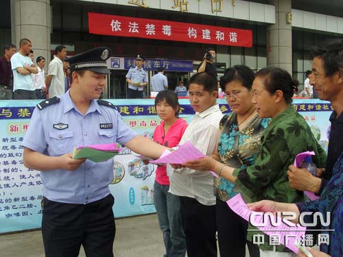 中廣網(wǎng)呼和浩特6月27日消息(記者文偉 通訊員周衛(wèi)申)為紀(jì)念“6.26”國(guó)際禁毒日,切實(shí)提高旅客群眾對(duì)毒品危害的認(rèn)識(shí),6月26日上午,包頭鐵路公安處聯(lián)合包頭車(chē)站、昆區(qū)公安分局、沼潭地區(qū)辦事處、沼潭派出所在包頭站聯(lián)合開(kāi)展主題為“依法禁毒、構(gòu)建和諧”的禁毒宣傳活動(dòng)。