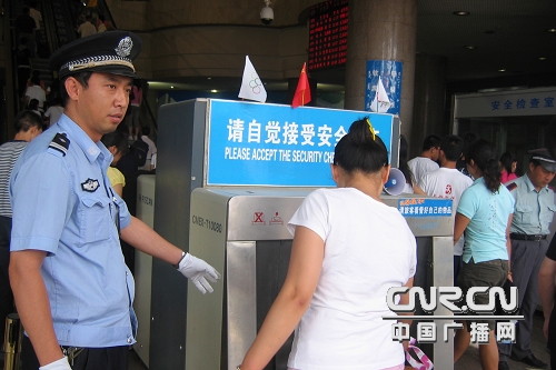 旅客在民警的提示下接受物品安全檢查