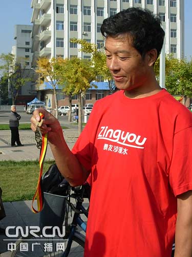 13日上午9時30分,在呼和浩特新華廣場,呼和浩特市民間體育愛好者們聽說任衛(wèi)東要往北京跑,都聞訊而來為其助威。從鄂爾多斯市來呼和浩特辦事的鄂爾多斯景友鴻鵠礦泉飲品有限公司董事長劉冬青,聽說任衛(wèi)東堅持長跑33年,每天風(fēng)雨無阻跑10公里,今年已自費參加了廈門、香港、蘇州、揚州、鄭州、大連6個城市的多次國際馬拉松賽,并取得了良好的成績,十分感動,專程來到新華廣場為任衛(wèi)東送上他們的產(chǎn)品,并資助其3000元參加2008北京國際馬拉松賽事,他的慷慨義舉,贏得呼和浩特民間體育愛好者們一陣熱烈的掌聲。