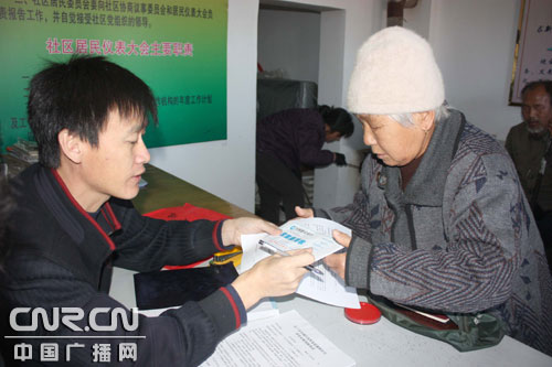 向陽街道辦事處工作人員正在核實發(fā)放建設(shè)銀行的現(xiàn)金卡(補貼金)