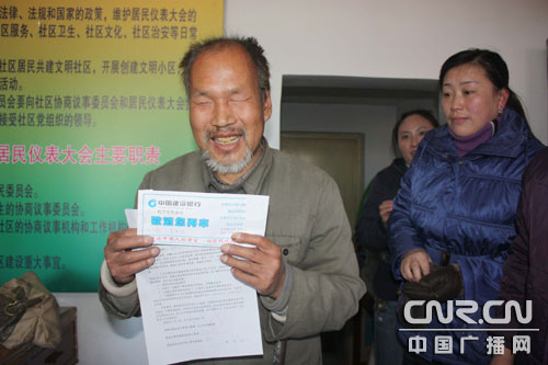 吳新江高興地領(lǐng)到了租賃住房補貼金(建設(shè)銀行的現(xiàn)金卡)