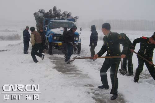 接此消息后,室韋邊檢站執(zhí)勤官兵來不及添加任何防寒衣物就立即拿起清雪工具,迅速趕往車輛受困地點幫助清理道路積雪。由于積雪較厚且降雪一直未停,加之此段坡路較長,官兵在零下10攝氏度的低溫環(huán)境下,克服了手中工具簡易帶來的不便,發(fā)揚部隊不怕苦、不怕累的優(yōu)良作風(fēng),堅持奮戰(zhàn)近兩個小時,將長約500米的道路徹底清理完畢,車輛得以繼續(xù)通行。司機張某緊緊握著執(zhí)勤官兵的手,激動地說:“邊檢官兵在關(guān)鍵時刻總能挺身而出,為我們排憂解難,真不愧是人民的子弟兵,太謝謝你們了!”