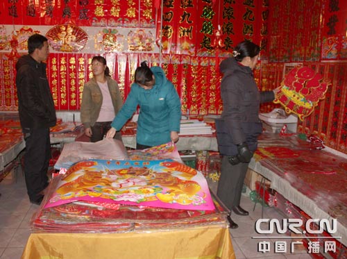 中廣網(wǎng)呼和浩特12月18日消息(記者鄭穎 通訊員紀(jì)明國)“爆竹一聲除舊,春聯(lián)萬戶更新”。距離春節(jié)還有一個多月時間,可是春節(jié)的傳統(tǒng)飾品——春聯(lián)卻早早地上市了。記者在內(nèi)蒙古扎蘭屯市步行街上幾個春聯(lián)銷售點看到,各式的春聯(lián)、大紅的福字、年畫等年貨“粉墨登場”,琳瑯滿目,前來購買春聯(lián)的顧客絡(luò)繹不絕,年味漸漸濃烈了。