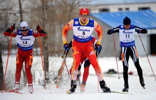 12月28日,中國選手孫清海(前)在比賽中。當(dāng)日,第二屆國際雪聯(lián)越野滑雪中國巡回賽首站比賽在內(nèi)蒙古自治區(qū)西烏珠穆沁旗舉行。中國選手孫清海獲得男子自由式1.4公里比賽第四名。 新華社記者任軍川攝