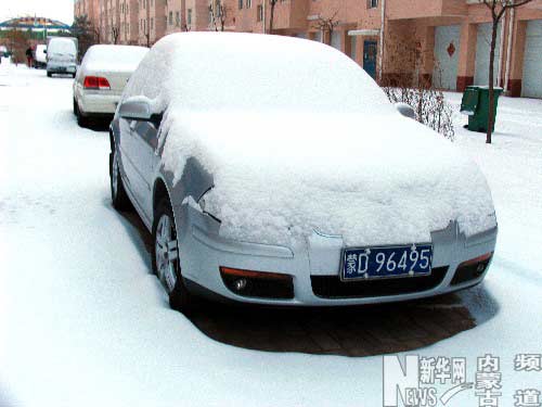 2月13日在赤峰市新城區(qū)長(zhǎng)安小區(qū)拍攝的落滿積雪的車輛。新華社發(fā)(李富 攝)
