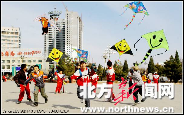 在3月25日舉行的風箏比賽上,小學生們開心地放飛風箏!凹堷S上青天,一去三千尺!便逶≈猴L,包頭市昆區(qū)包鋼實驗一小在阿爾丁廣場舉行了放飛夢想風箏比賽,600多名小學生在春天的懷抱中放飛了夢想。(周蕾)
