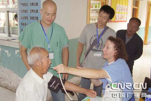 聽說醫(yī)療隊(duì)來了,全鎮(zhèn)21個(gè)行政村,3個(gè)居委會(huì)200多名農(nóng)民,排起了長(zhǎng)隊(duì),腰酸的、腿痛的、胃不好的……平時(shí)忙于勞作的農(nóng)民們很少有時(shí)間有精力趕幾十里路到鎮(zhèn)衛(wèi)生院去好好檢查身體,趁著這個(gè)機(jī)會(huì),好好檢查一下。老外醫(yī)生為繁榮村的張萬福老漢測(cè)量了血壓并作了診斷,為他免費(fèi)領(lǐng)取了所需藥品。并通過翻譯讓其家屬開展日常護(hù)理。張萬福老漢欣慰地說:“自己患高血壓多年,需經(jīng)常吃藥,幸好老外醫(yī)療隊(duì)來鎮(zhèn)里義診,我相信她們的醫(yī)術(shù),自己的病會(huì)逐步好轉(zhuǎn)。”