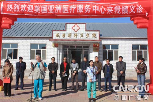 上午10點(diǎn)半,由內(nèi)、外、婦、兒、神經(jīng)、心腦血管等多科專家、教授組成的美國(guó)亞洲醫(yī)療服務(wù)交流中心的美國(guó)全球健康服務(wù)隊(duì)成員剛一下火車就風(fēng)塵仆仆趕到了扎蘭屯市成吉思汗鎮(zhèn)衛(wèi)生院,他們?cè)谛l(wèi)生院里搬出桌凳擺在走廊上,擺好各種醫(yī)療器械和藥品箱,一個(gè)臨時(shí)的簡(jiǎn)易“醫(yī)院”剛剛落成。就迎來了一拔拔前來看病的農(nóng)民。