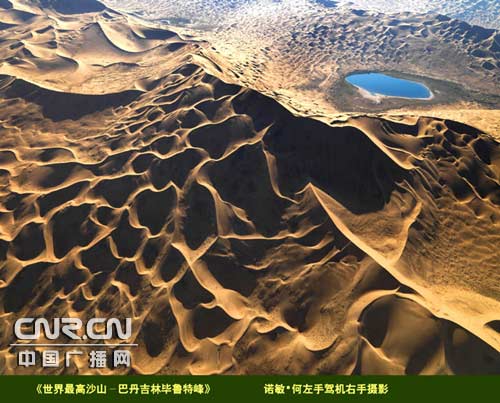 中廣網(wǎng)呼和浩特11月25日消息(記者鄭穎)日前,左手駕駛飛機(jī),右手任意角度攝影世界第一人諾敏 何完成了對“中國秘境”——阿拉善的航拍。這次航拍歷時(shí)近半年,分別航拍了位于阿拉善境內(nèi)的巴丹吉林沙漠、胡楊林等著名景點(diǎn)。圖為航拍歸來諾敏何向記者展示的航拍作品。