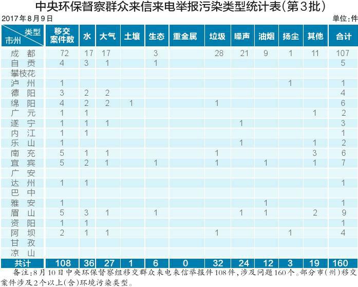 8月10日,中央第五環(huán)境保護督察組向我省移交第三批信訪件,共計108件,加上此前移交的120件信訪件,目前累計移交信訪件228件。