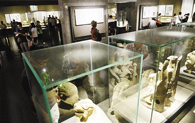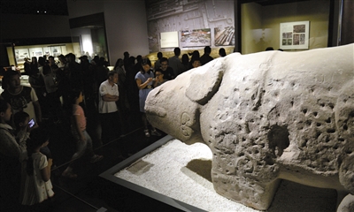成都博物館內(nèi),天府廣場出土的“萌獸”石犀是人氣展品