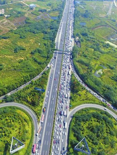 10月1日中午11點過,成南高速車輛排行數(shù)公里。
