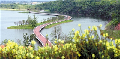 成都科學(xué)城一棟棟充滿時(shí)尚氣息的建筑身后,便是興隆湖。如果說興隆湖像一塊翡翠,那環(huán)湖景觀帶便是纏繞在這塊“翡翠”上的“絲帶”。