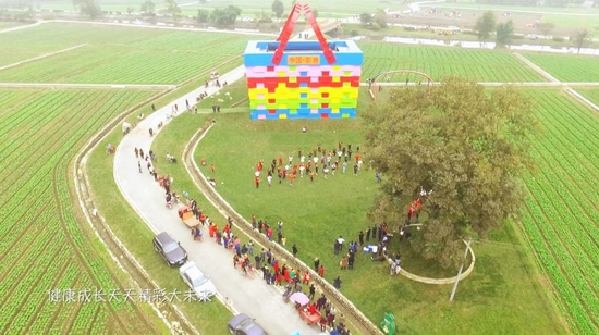 原來,快閃發(fā)生在彭州市濛陽鎮(zhèn)蔬菜主題公園旁的一片草地上。記者在視頻中看到,一個(gè)十來米高的碩大五彩“菜籃子”吸引來不少市民和游客,大家愜意地散步、拍照。突然,音樂響起了,走動(dòng)的人們停住腳步,一個(gè)年輕姑娘最先跑到人群中,跳起舞來。