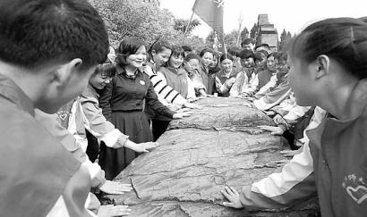 4、冕寧紅色之城、彝海結(jié)盟兩大紅色旅游景點(diǎn) 眾多學(xué)子在巴中市南龕山紅軍石景點(diǎn)處參加紅色研學(xué)游。 (省旅游發(fā)展委供圖)