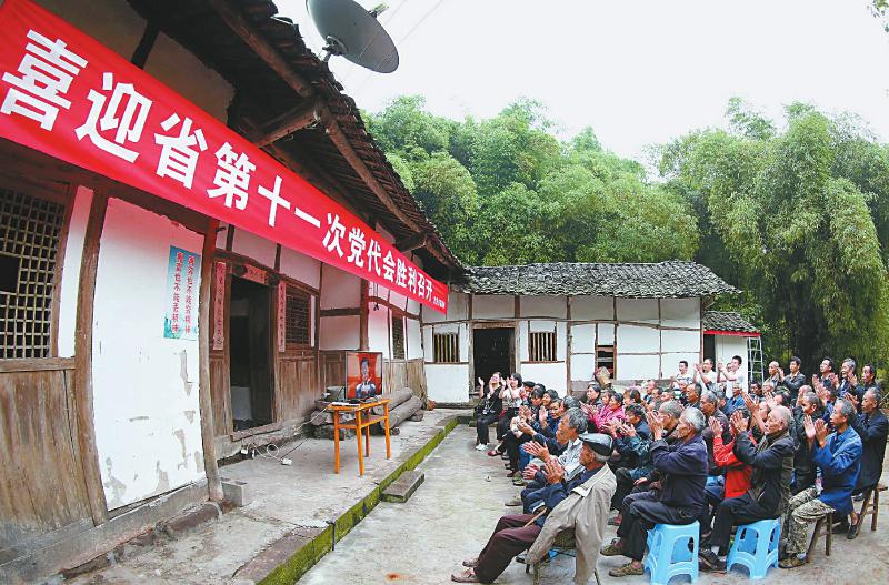 5月24日上午,阿壩州黑水縣麻窩鄉(xiāng)木日窩村,村支部書(shū)記羅讓和全村8名黨員通過(guò)電視收看省第十一次黨代會(huì)開(kāi)幕盛況。