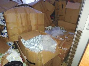制假窩點(diǎn)中被查獲的假藥。