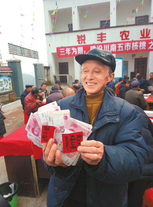 “萬萬沒想到,老板還把工資給我們送到家里來了,這下能過個好年了。”昨日中午,當(dāng)屏山縣鴨池鄉(xiāng)隆興村的村民姜開榮從屏山銳豐農(nóng)業(yè)公司領(lǐng)到2016年的勞務(wù)費時,笑得合不攏嘴。當(dāng)天,隆興村隆興隊、榜上隊的100多名村民在村公所領(lǐng)到了2016年工資、土地流轉(zhuǎn)金等共計54萬現(xiàn)金。手捧現(xiàn)金時,村民紛紛感嘆,今年能過個好年。