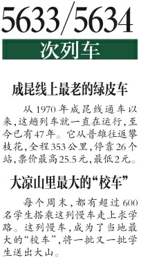 依火紅敏是西昌航天學(xué)校的一名初三學(xué)生,家住涼山州喜德縣沙馬拉達(dá)鄉(xiāng)。每個(gè)周末,她都要乘坐這趟火車(chē),在家和學(xué)校之間往返。