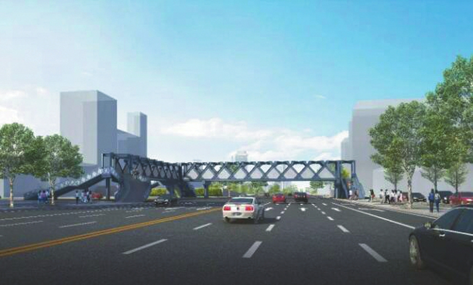 過(guò)去,自由路人車混雜的情況比較突出。而本次人行交通節(jié)點(diǎn)改造,將結(jié)合公園路口與新瑪特和一醫(yī)院形成的“人”字形交叉口,增設(shè)人行天橋,加入無(wú)障礙通行設(shè)施。同時(shí),結(jié)合天涯及步行街兩側(cè)的地形落差,設(shè)置一座無(wú)障礙人行天橋。