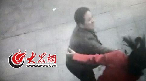 視頻監(jiān)控畫面顯示,被曝光的濰坊城管干部正擊打孟女士。