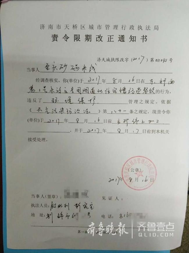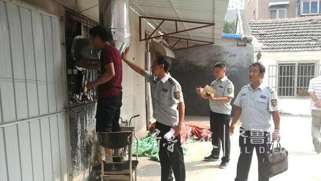 濟南天橋區(qū)執(zhí)法一中隊于8月16日向該家餐飲業(yè)戶下達了《濟南市天橋區(qū)人民政府關(guān)于依法關(guān)閉違法餐飲項目的通告》、《告知書》、《責(zé)令限期整改通知書》;同時區(qū)城管執(zhí)法局一中隊組織執(zhí)法人員對該處餐飲業(yè)戶經(jīng)營房內(nèi)作業(yè)物品、加工材料、門頭牌匾等進行了搬離及拆除,并對該處房屋進行了斷水?dāng)嚯姶胧,依法對該業(yè)戶進行關(guān)門停業(yè)。