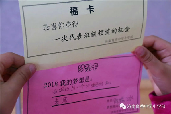 打開紅包,里面有一張"夢想卡"和一張幸運"福卡"