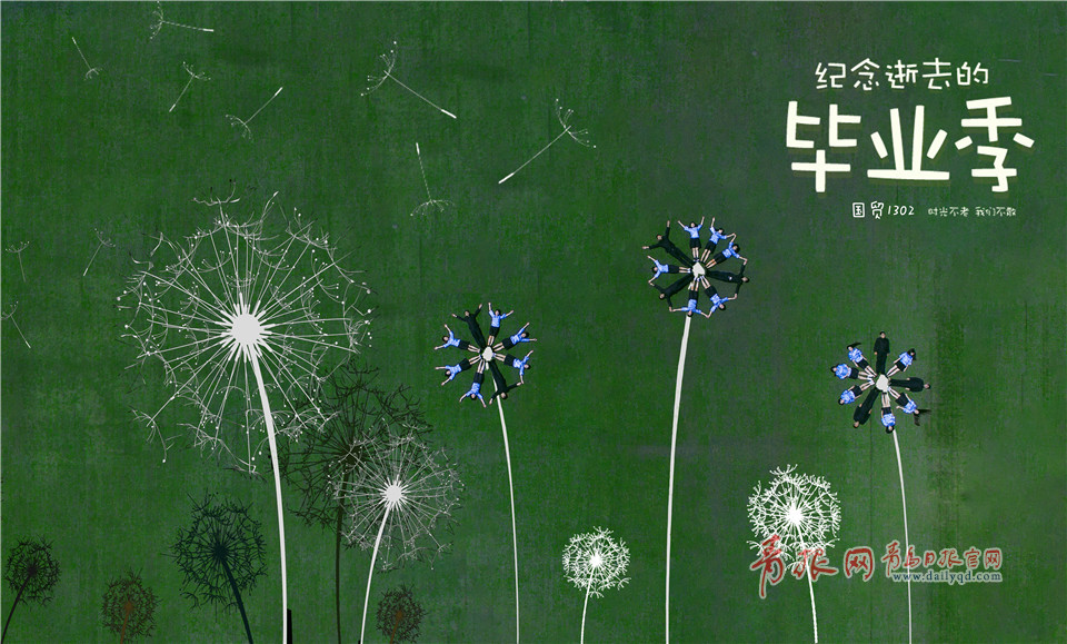 畢業(yè)季,中國石油大學(華東)一組創(chuàng)意畢業(yè)照在師生朋友圈里廣泛轉發(fā),這組航拍加后期涂鴉的青春畢業(yè)照以草坪為畫布,將三維場景平面化,每張照片可變成了一幅可愛萌動又有點夢幻色彩的涂鴉畫。
