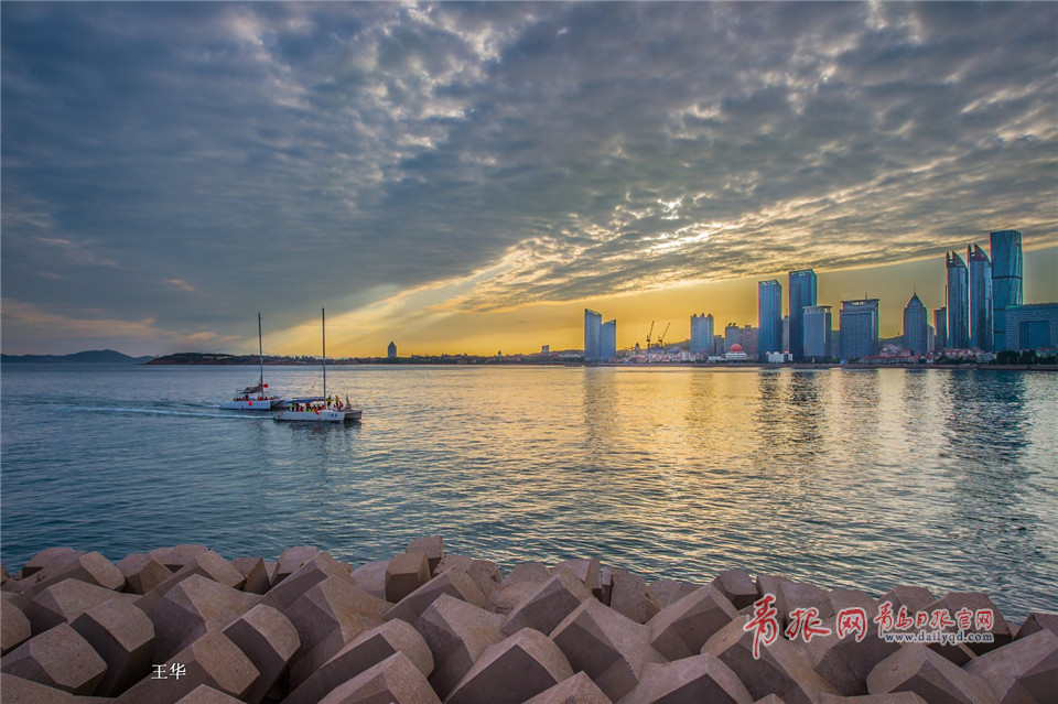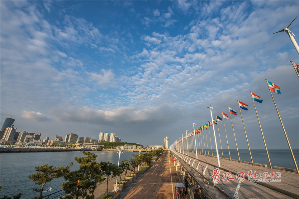 進入仲夏的青島,風和日麗,氣候宜人。廣角鏡頭里的青島奧帆中心,藍天白云,帆船點點,美景如畫。