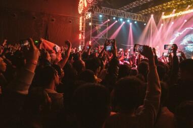 痛仰、海龜先生、馬賽克、鳥(niǎo)撞、發(fā)光曲線(xiàn)……一支支樂(lè)迷們耳熟能詳?shù)臉?lè)隊(duì)在最熱烈的歡呼中逐一登臺(tái)演奏!豆分琛贰讹w天》《瑪卡瑞納》、一首首膾炙人口的歌曲,更是引發(fā)了全體合唱,樂(lè)迷們用閃光燈點(diǎn)燃熱愛(ài)的星光,投射于青島純生舞臺(tái)之上,碰撞出燦爛的花火。