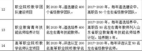 山東省教育廳相關負責人表示,通過實施職業(yè)教育質量提升計劃,我省將培育一批辦學理念先進、管理規(guī)范、特色鮮明、在全國有影響力的示范性優(yōu)質職業(yè)院校,加快順應時代要求、具有山東特點、走在全國前列的現(xiàn)代職業(yè)教育體系建設步伐,為經(jīng)濟文化強省建設提供技術技能人才支撐。