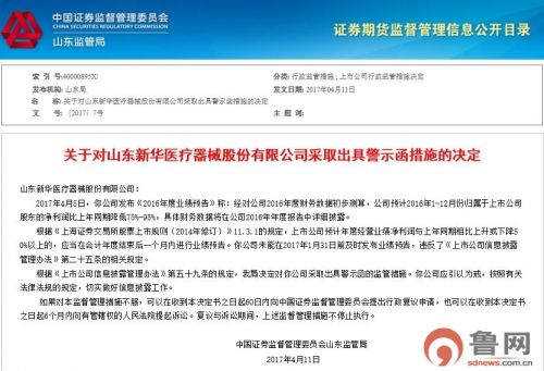 據(jù)相關警示函顯示,此次新華醫(yī)療(600587.SH)被監(jiān)管主要源自新華醫(yī)療此前未能及時披露相關業(yè)績預告。