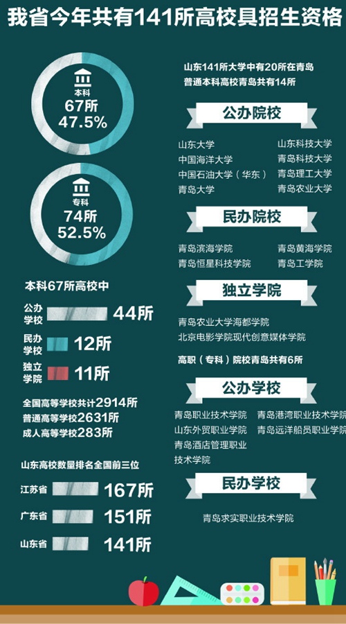 山東省有67所本科高校招生