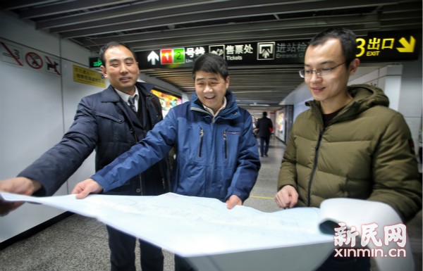 圖說(shuō):王如路委員(中)和同事正在看圖紙 新民晚報(bào)記者 張龍/攝
