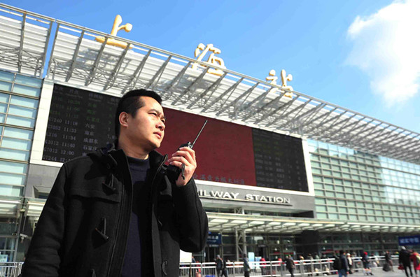 周榮亮在維持旅客進(jìn)站秩序