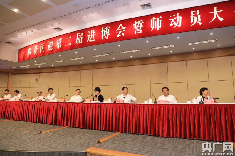 上海奉賢召開迎接第二屆進博會誓師動員大會(央廣網(wǎng)發(fā) 奉賢區(qū)新聞辦供圖)