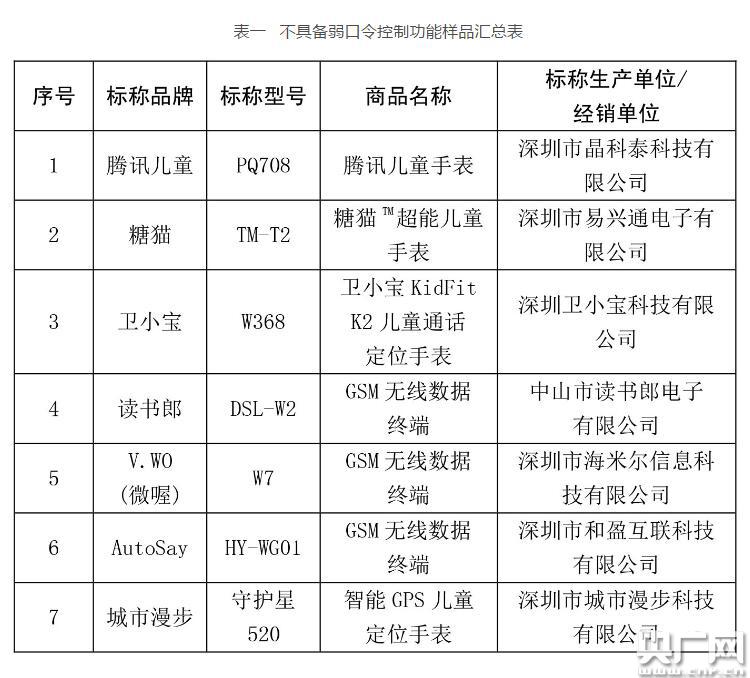 本次試驗(yàn)對(duì)20塊智能手表的信息安全進(jìn)行了測(cè)試,結(jié)果顯示,7塊兒童智能手表不具備弱口令控制的功能,即允許用戶使用諸如123456的簡(jiǎn)單密碼等(詳見表一)。