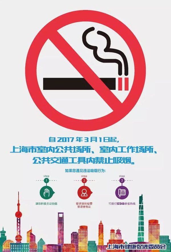 據(jù)上海發(fā)布,今天起,《上海市公共場所控制吸煙條例》修正案正式施行,申城的“天花板”下全面禁煙啦!3月第一周為首個“集中執(zhí)法周 ” ,上海將開展專項執(zhí)法,形成依法監(jiān)管的警示效應;還將加強專項治理和環(huán)境支持工作,建立完善常態(tài)管理和源頭治理機制。多部門綜合執(zhí)法的控煙監(jiān)管模式如何落實? 單位或個人若發(fā)現(xiàn)違法吸煙行為怎么舉報?