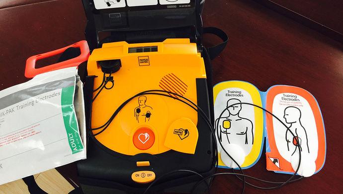 在培訓人員的指導下,記者嘗試了AED 模擬使用:首先,取出并按下電源按鍵后,按照語音提示撕開密封的貼片包裝;第二,其中的黃色與紅色兩片貼片即作用于患者的電極片,根據(jù)圖示分別貼于左胸部上方與右胸部下方,并將電極線插入AED相應插口處;第三,機器語音會立即提示“正在分析心律”,并根據(jù)實際情況告知應電擊還是繼續(xù)人工救護,使用過程不超過1分鐘;需要注意的是,除AED語音提示“離開患者”外,其余時間施救者都應持續(xù)進行心肺復蘇(CPR)搶救,保證胸外按壓頻率在每分鐘100至120次。