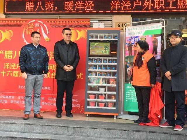 上海國際醫(yī)學(xué)園區(qū)集團(tuán)有限公司總經(jīng)理陸曉煒代表告訴記者,從昨天開始,浦東洋涇街道出現(xiàn)了一個(gè)3.0版的共享冰箱,在之前服務(wù)周邊居民區(qū)困難家庭的基礎(chǔ)上,更是輻射到了快遞員、外賣員、環(huán)衛(wèi)工人等廣大戶外職工。冰箱里有水、方便面和臘八粥,經(jīng)過簡單加熱后,他們就能在辛勞工作之余吃上一碗熱氣騰騰的臘八粥了!坝暄┨,戶外工作者們冒著嚴(yán)寒在外辛勤工作,保障了上海城市在雨雪天氣里正常運(yùn)行,而這座冰箱專門為他們而設(shè),讓他們也能在嚴(yán)寒中吃上新鮮溫暖的食物。”