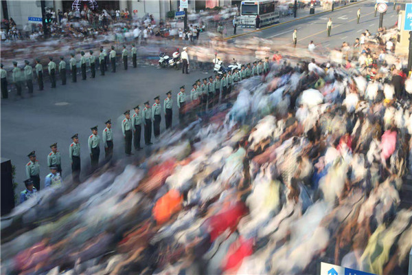 連續(xù)幾年擔(dān)負(fù)國(guó)慶安保執(zhí)勤任務(wù),對(duì)外灘區(qū)域的大客流已司空見(jiàn)慣了,但今年的人流量明顯早于和多于去年,當(dāng)潮水般的人群向執(zhí)勤區(qū)域涌來(lái)時(shí),我腦海里唯一想到的就是一定要組織指揮好部隊(duì),決不能有半點(diǎn)的疏忽,確,F(xiàn)場(chǎng)秩序和游客安全。