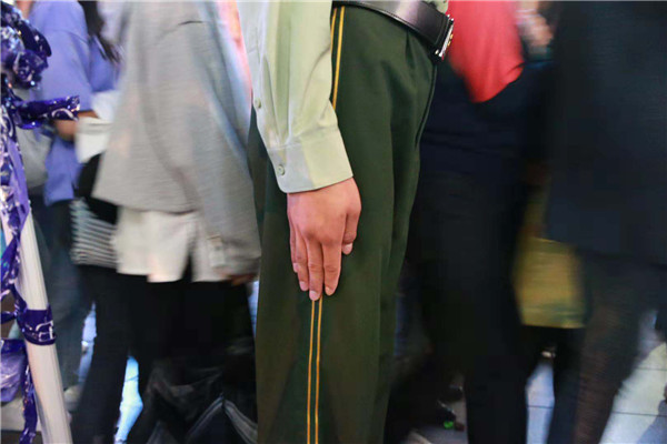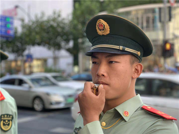我們每天的執(zhí)勤時(shí)間將近12小時(shí),采取的是2班倒的模式,平均每人要在哨位上站至少6個(gè)小時(shí),人墻是1分鐘開(kāi)合1次,一次執(zhí)勤下來(lái)大概開(kāi)關(guān)30次。今年,是我第3次在南京路擔(dān)負(fù)國(guó)慶安保任務(wù),能在車水馬龍的南京路執(zhí)勤,保證國(guó)內(nèi)外游客的安全,我感覺(jué)很激動(dòng)也很自豪?