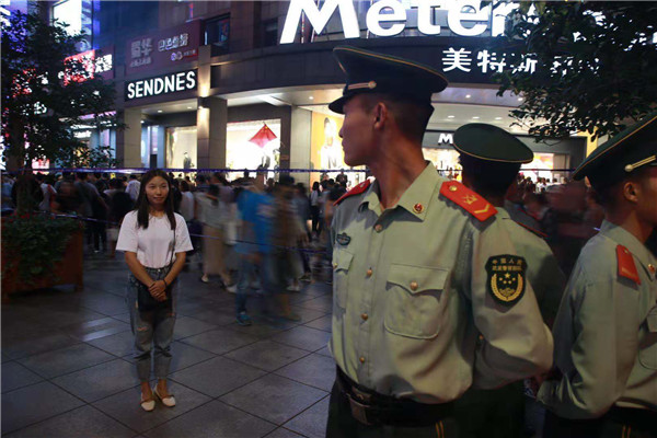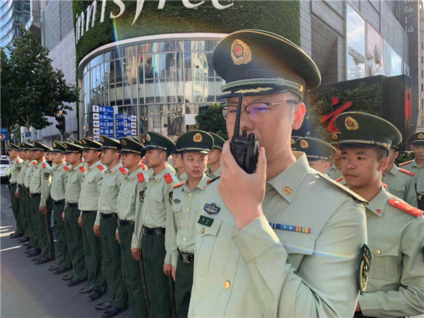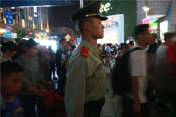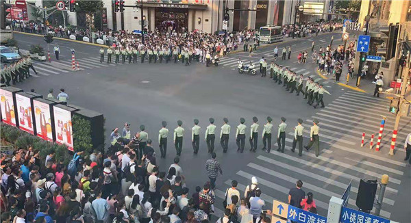 圖說(shuō):南京路步行街武警“人墻”。胡云峰攝(下同)