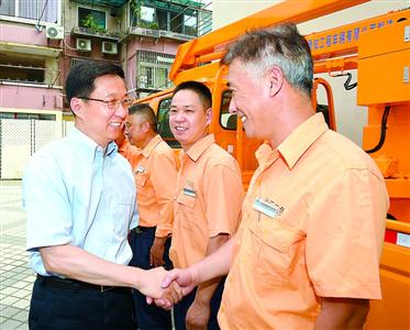 持續(xù)高溫,熱浪襲人。市委副書記、市長應(yīng)勇一行首先來到黃浦路吉公司淮海中路清道班,該班組承擔(dān)淮海中路、茂名南路和龍門路的道路日常保潔任務(wù),曾多次榮獲“上海市模范集體”等榮譽(yù)稱號。應(yīng)勇與環(huán)衛(wèi)工人們一一握手,關(guān)心詢問高溫天的作息安排,并對大家說:“城市的環(huán)境衛(wèi)生離不開你們的辛勤付出,感謝你們,也向全市環(huán)衛(wèi)工人表示慰問!”市領(lǐng)導(dǎo)特別關(guān)心環(huán)衛(wèi)工人的休息條件,市綠化市容局相關(guān)負(fù)責(zé)人說,在市總工會等支持下,很多單位都主動為環(huán)衛(wèi)工人提供休息場所,目前全市已有3500多個“愛心接力站”。