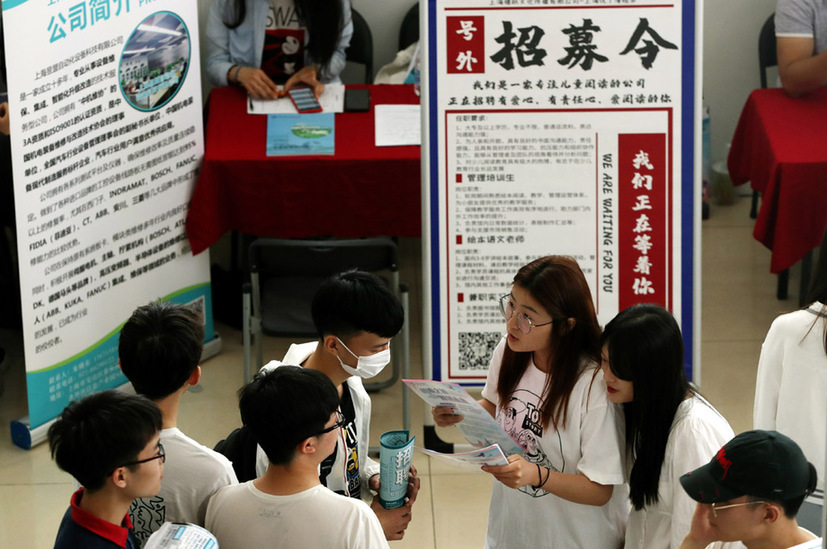 5月19日,畢業(yè)生在了解招聘信息。