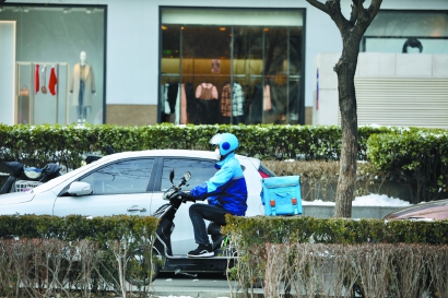 申城街頭隨處可見的外賣騎手。 鄔林樺 攝